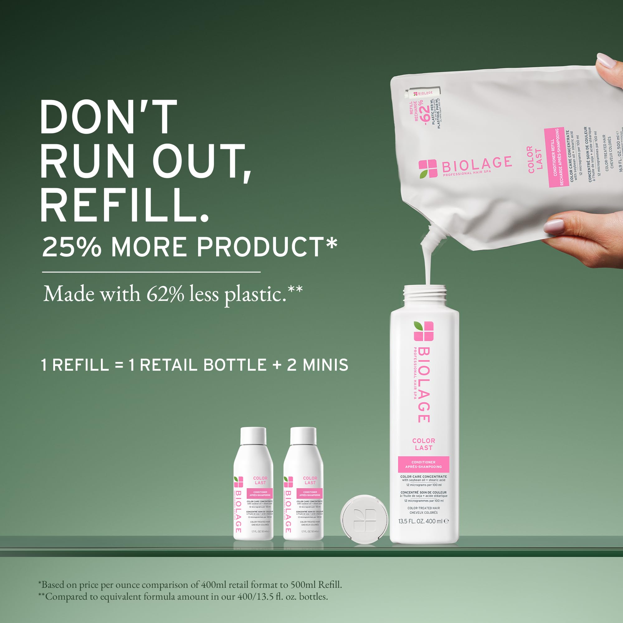 Biolage Color Last Conditioner and Refill Conditioner Set - Protects & Preserves Color Treated Hair, Adds Shine, With Soybean Oil & Stearic Acid, Paraben & Mineral Oil-Free